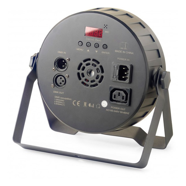 - Functions: Dimmer (0-100 %), strobe (0-20 Hz), auto, sound control,