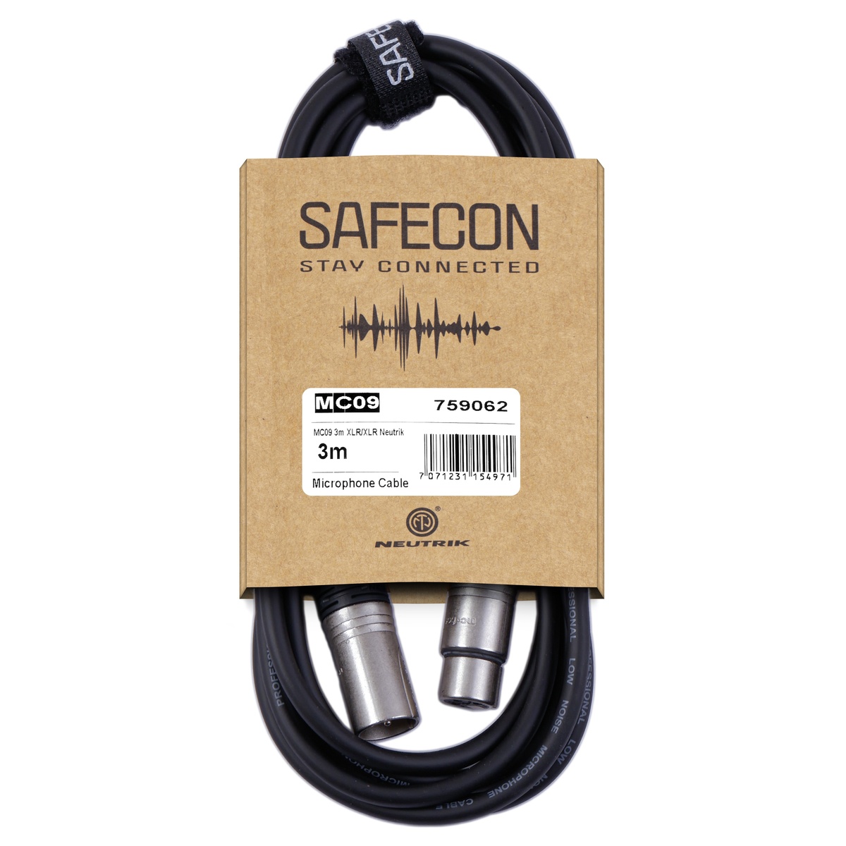 Høykvalitets XLR kabel fra Safecon, produsert i Kina, med Neutrik-kontakter. Kabelen er laget for bruk i sammenhenger