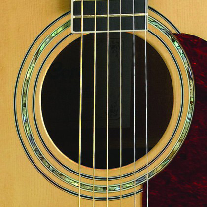 spruce top, mahogany back and sides, Ovangkol fingerboard. The classic dreadnaught body has